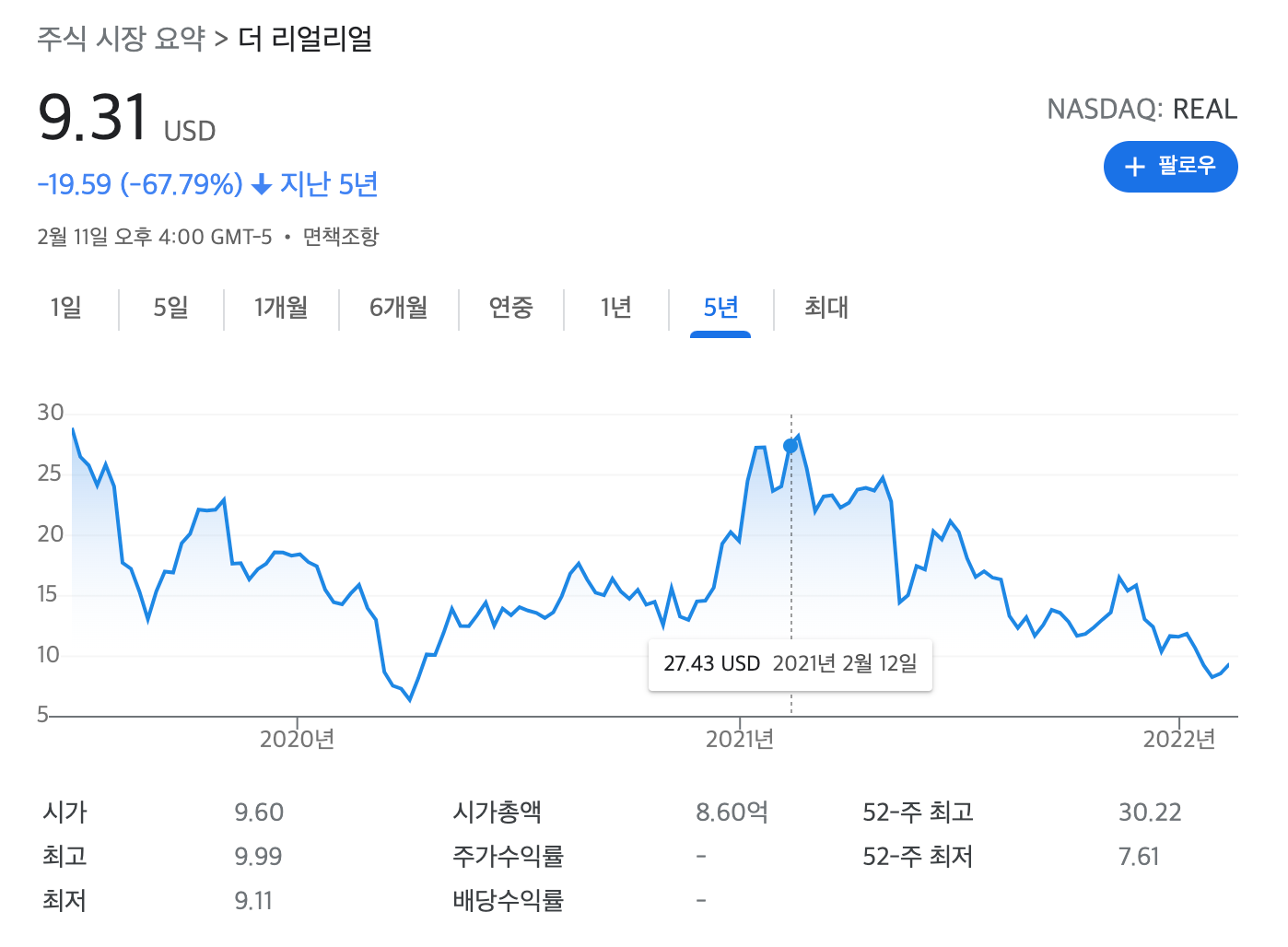 - 이때 팔았던 미국주식 더 리얼리얼이 요즘 어떤지 봤는데, 음...팔길 잘 했다.